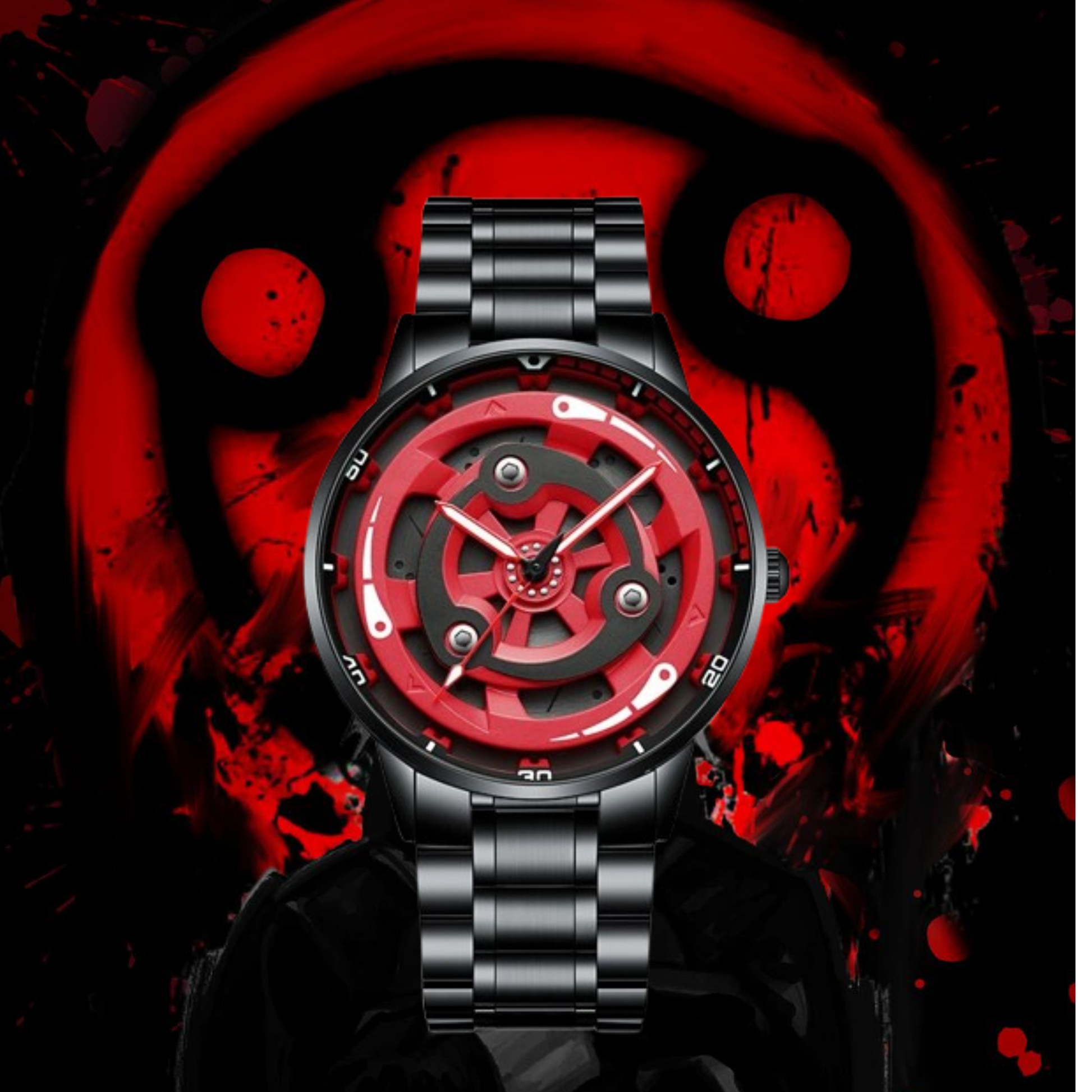 Inspired by the iconic Sharingan, this watch blends anime culture with modern fashion through its rotating dial, precise quartz movement, and bold design that instantly stands out.